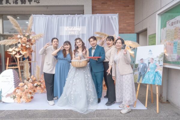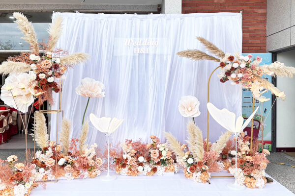 可加購:新人姓名背板、LOGO字樣、鮮花升級、拍照道具等